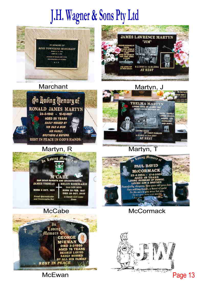 With a total of 23 pages of photographs demonstrating headstones which are suitable for the Goondiwindi (lawn) Cemetery we understand the choices may be daunting, however at J.H. Wagner & Sons we also aim to provide the very best of options and personalised service to assist with the selection that best suits your needs.
